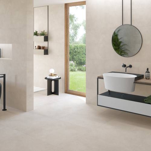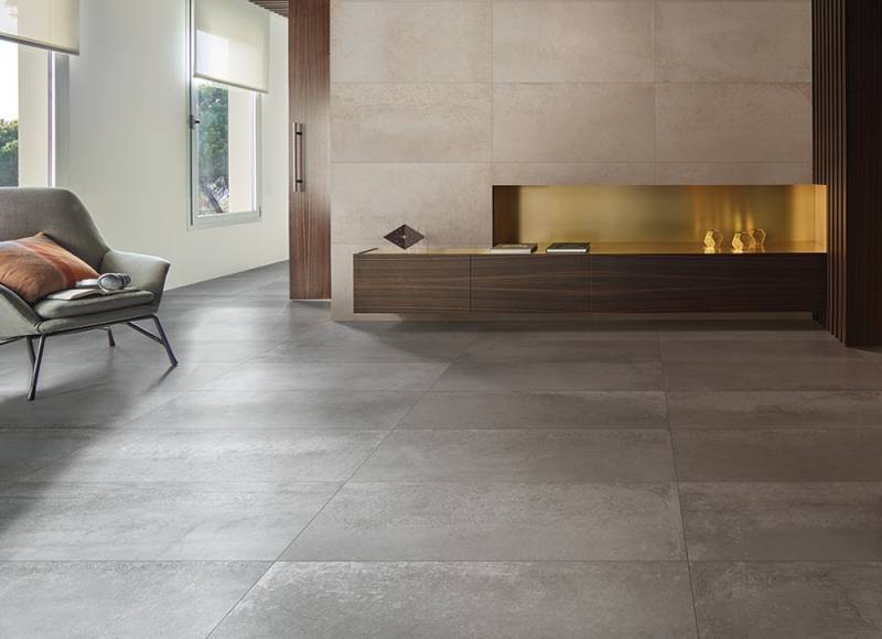 Le béton ciré est un revêtement très tendance et contemporain qui communique une esthétique industrielle. On peut l’appliquer aussi bien au sol que sur un mur pour un aspect résolument moderne. Le carrelage effet béton sont la plupart du temps en grès cérame pleine masse. Ainsi en cas d’éclat, la couleur en dessous est la même qu’au-dessus.